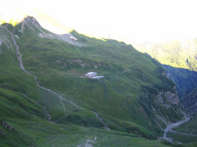 Hüttentour Allgäu 2011: Tag 3 / 3-01-Kemptner-Huette - 04.07.2011 3. Tag: Start zur längsten Tagestour (9 Stunden gem. Angabe) zum Prinz-Luitpold-Haus, also geht es um 6:30 Uhr nach einem Müsli-Frühstück los.